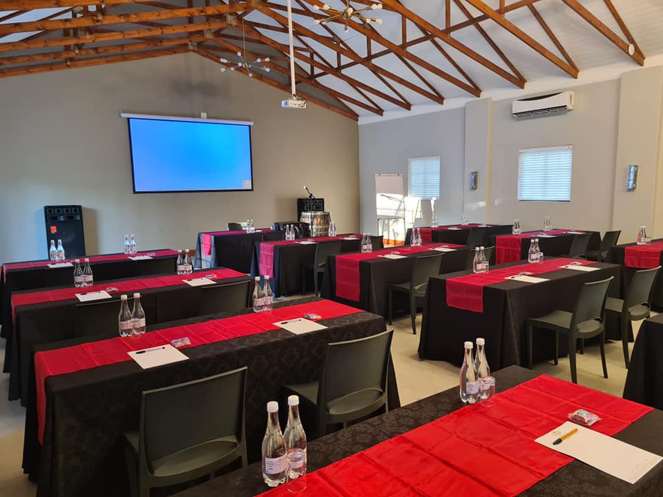 Our conference venue is equipped with essential amenities, including a fixed projector and screen, as well as a PA system, ensuring smooth presentations and seamless communication. Restrooms, secure parking, and backup power during load shedding provide added convenience and peace of mind.
